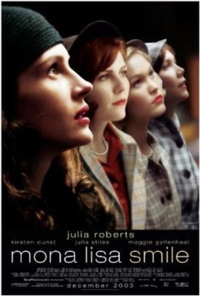 Mona Lisa Smile (2003) – Драма про викладачку історії мистецтв Кетрін Вотсон, яка 1953-го приїздить до коледжу Веллслі й заохочує студенток мислити самостійно, кидаючи виклик консервативним нормам. IMDB: 6.6