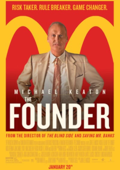 The Founder (2016) – Фільм розповідає про продавця Рея Крока, який у 1954 році зустрічає братів Макдональд, власників популярної закусочної, та бачить потенціал франчайзингу. Завдяки хитрощам і наполегливості він перетворює McDonald’s на світову імперію фастфуду. IMDB: 7.2
