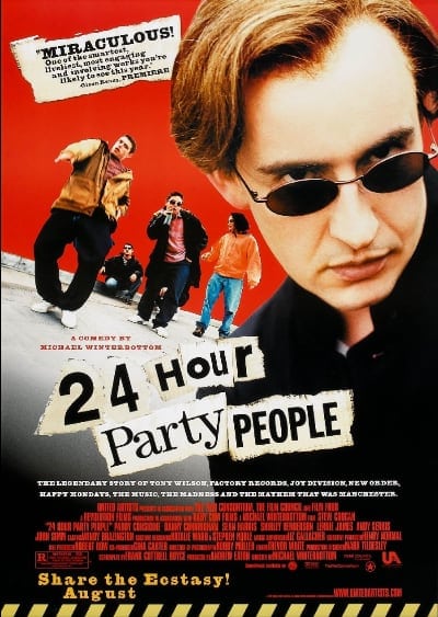 24 Hour Party People (2002) – Біографічна трагікомедія про телеведучого Тоні Вілсона й становлення лейблу Factory Records у Манчестері: від панку до «Madchester». Фільм змішує факт і міф, ламає «четверту стіну» та показує Joy Division, New Order і Happy Mondays. IMDB: 7.3