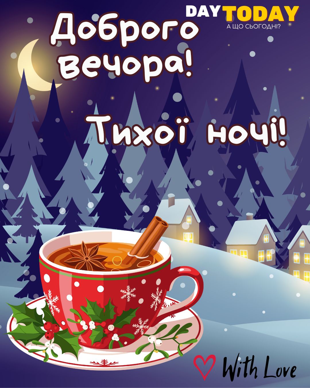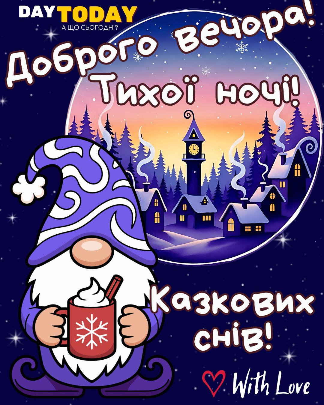 DAY TODAY листівки – найзатишніший каталог листівок українською мовою. Ми щодня створюємо нові теплі листівки та картинки, аби ви могли привітати своїх рідних та близьких в будь-яких соцмережах та месенджерах. Тисячі користувачів в Вайбері та Телеграмі вже отримали наші листівки.