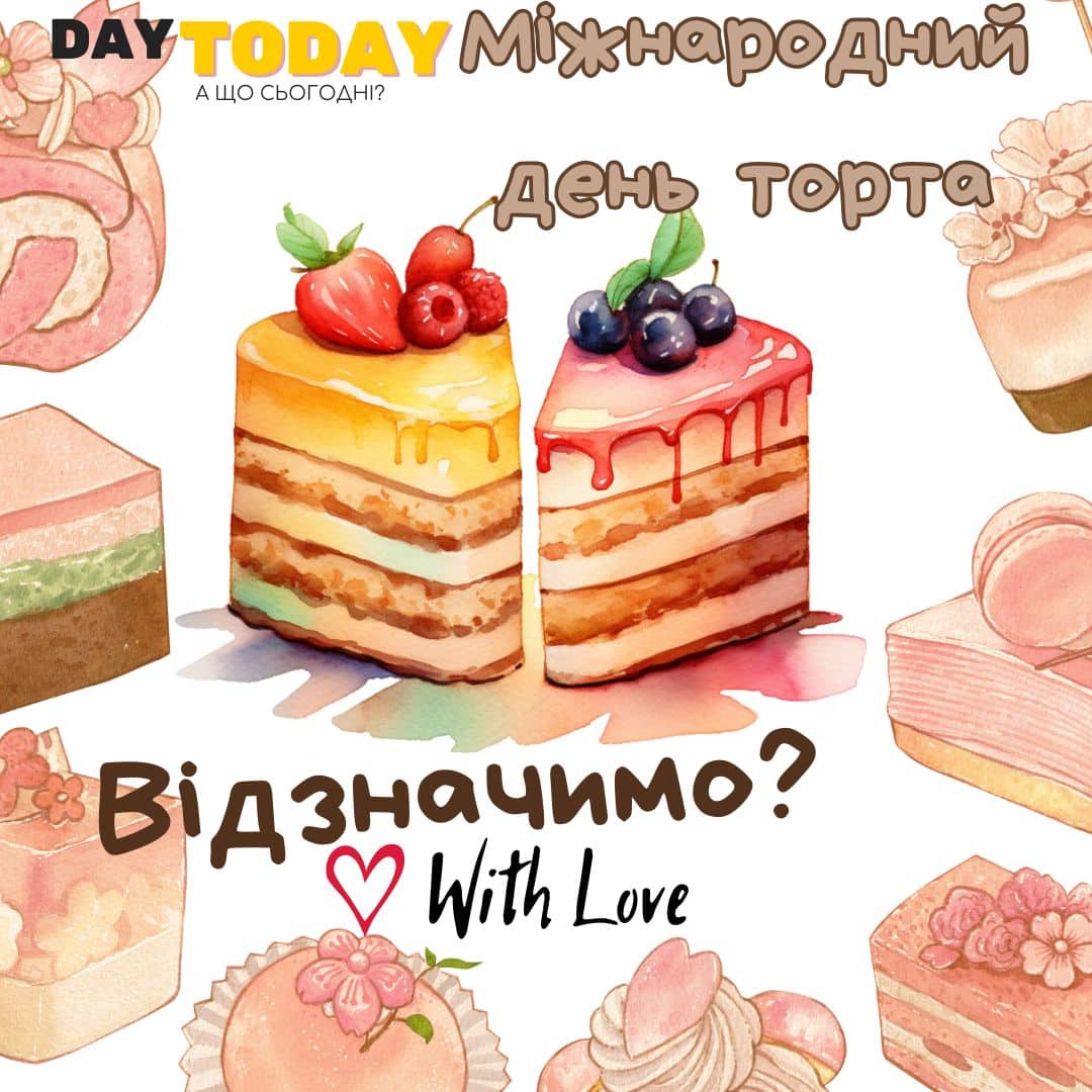 20 липня кожного року ласунчики з усієї планети відзначають Міжнародний день торта (International Cake Day). Смачна подія виникла у 2011 році, ініціатива створення належить міжнародній спільноті творчих людей під назвою “Міланський Клуб” Королівства Любові.