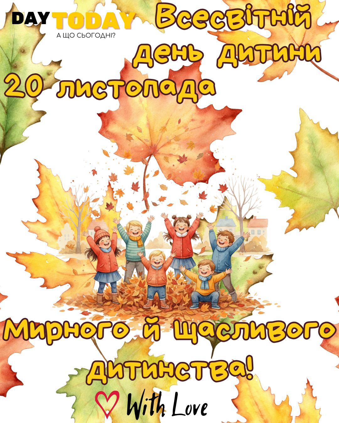 Як чудово бачити посмішки дітей та чути їхній сміх, адже саме в дитинстві все здається райдужним та позитивним. Кожен малюк має право бути щасливим. Здорові та радісні діти – запорука кращого майбутнього для кожної країни. Слід пам’ятати, що попри будь-який свій вік, дитина вже є особистістю. Всесвітній день дитини запровадила ООН. Його основною ціллю є повноцінний розвиток дитини, залучення до повноцінного суспільного життя. Вже не раз було доведено, що від якості дитячих років залежить усе подальше життя. Щорічно Всесвітній день дитини (World Children’s Day) святкують 20 листопада. 1