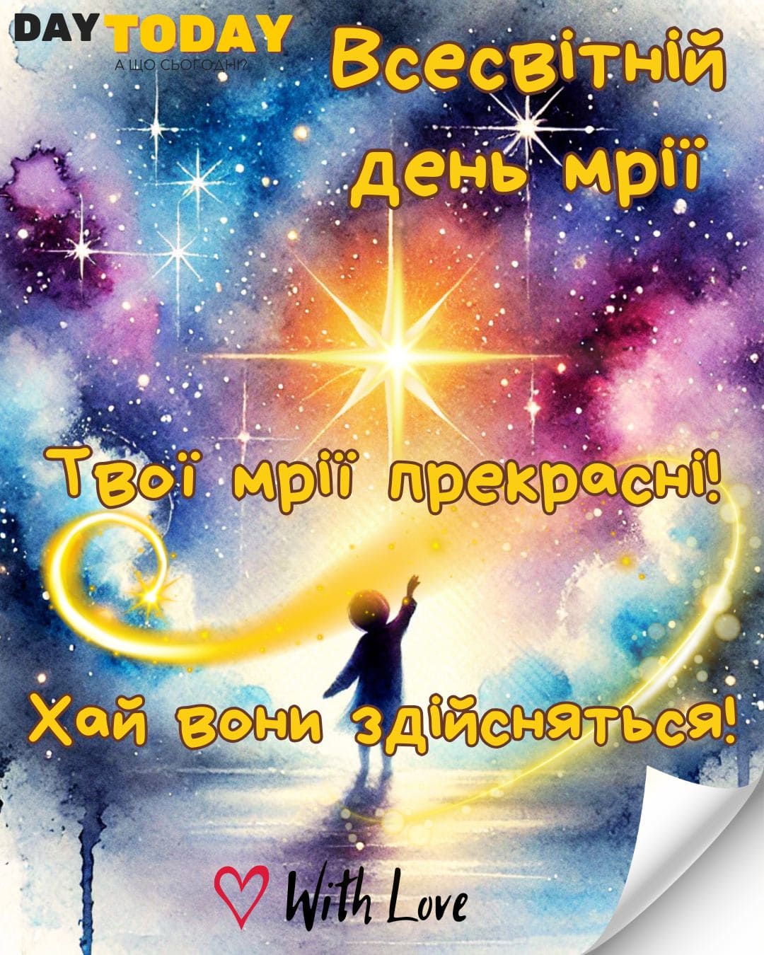 Тож нехай у Всесвітній день мрії якомога більше людей відкривають для себе задоволення мріяти, а разом з ним змінюють своє життя на краще.