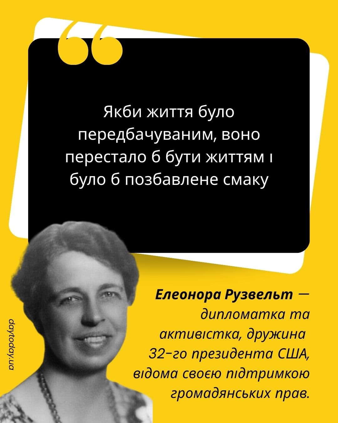 “Якби життя було передбачуваним, воно перестало б бути життям і було б позбавлене смаку” – Елеонора Рузвельт