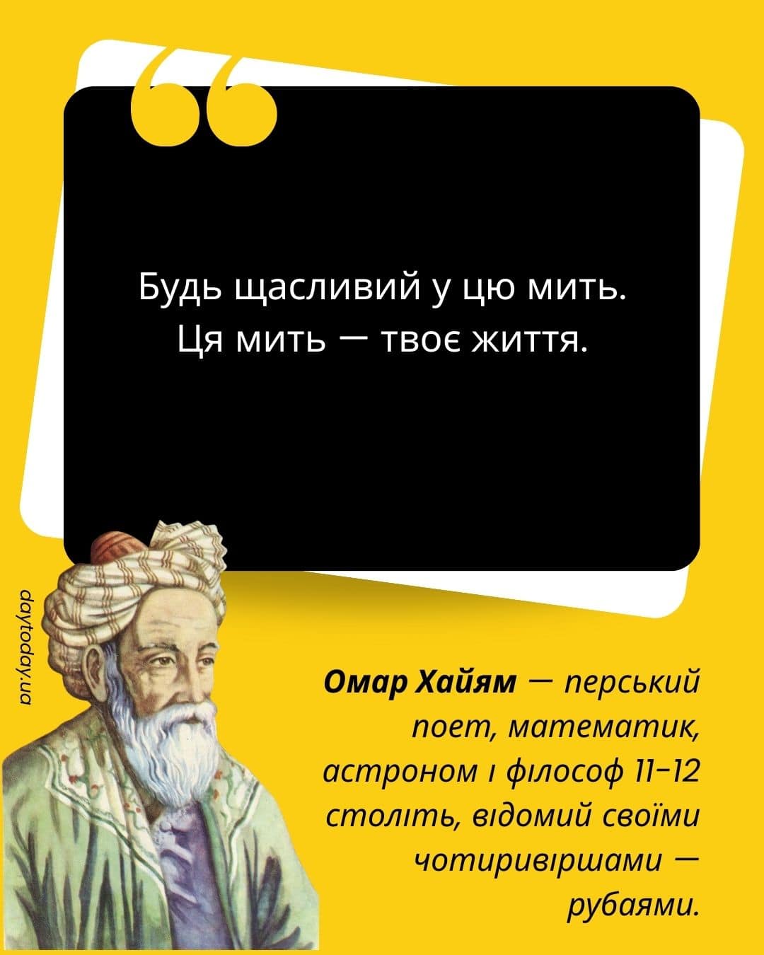 “Будь щасливий у цю мить. Ця мить — твоє життя.” – Омар Хайям